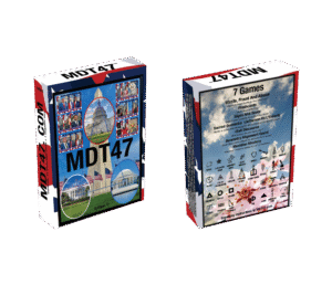 A collector’s deck of cards commemorating the cabinet and key advisors of the 2025 Trump Administration, alongside iconic Washington DC monuments and sacred geometry elements from Pierre L’Enfant’s visionary design. MDT47 Edition 1 features 51 beautifully illustrated cards with hidden symbols and numbers on the backs, plus a magnifier card (for discovering hidden details), enabling seven engaging games: Waste, Fraud and Abuse (a kid-friendly “War” variant), Flashcards (memory-building fun), Signs and Seals (symbol-matching strategy), Jefferson Vs. L’Enfant (historical alignment duel), Geometry Alignment Quest (shape-building puzzle), Meridian Mastery (meridian shift battle), and Civil Discourse (A free-speech game of praise or criticism).
